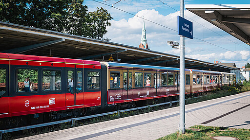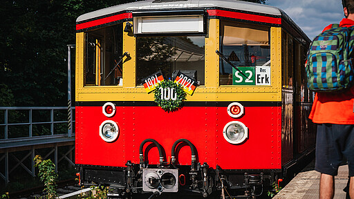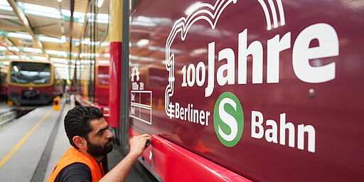 Zum Jubiläum hatte die S-Bahn sich und ihren Fahrgästen ein besonders Geschenk gemacht: Ab jetzt ist ein mit zehn verschiedenen Fahrzeugdesigns der vergangenen 100 Jahre beklebter Zug (zunächst) auf der Linie S2 unterwegs.