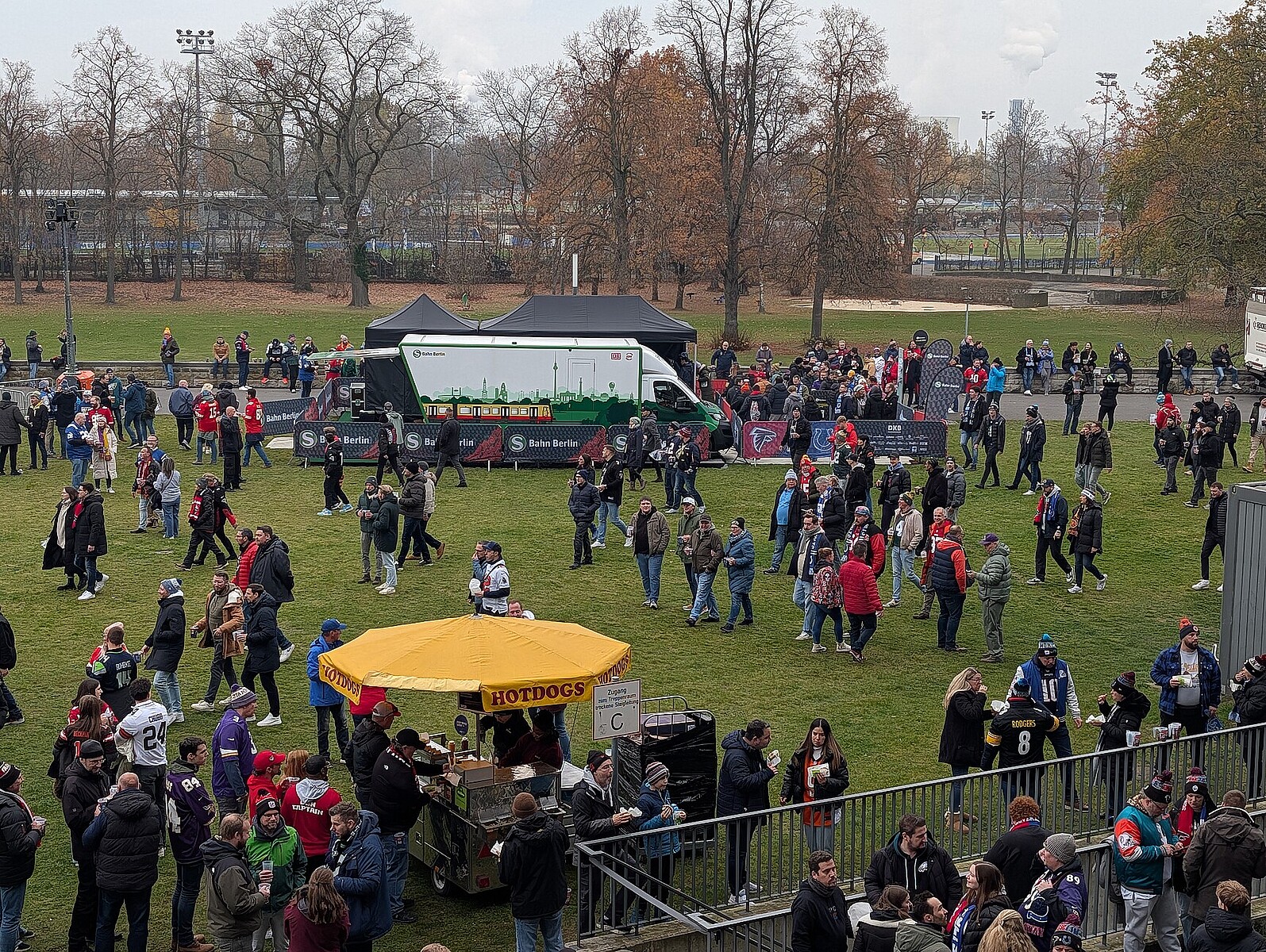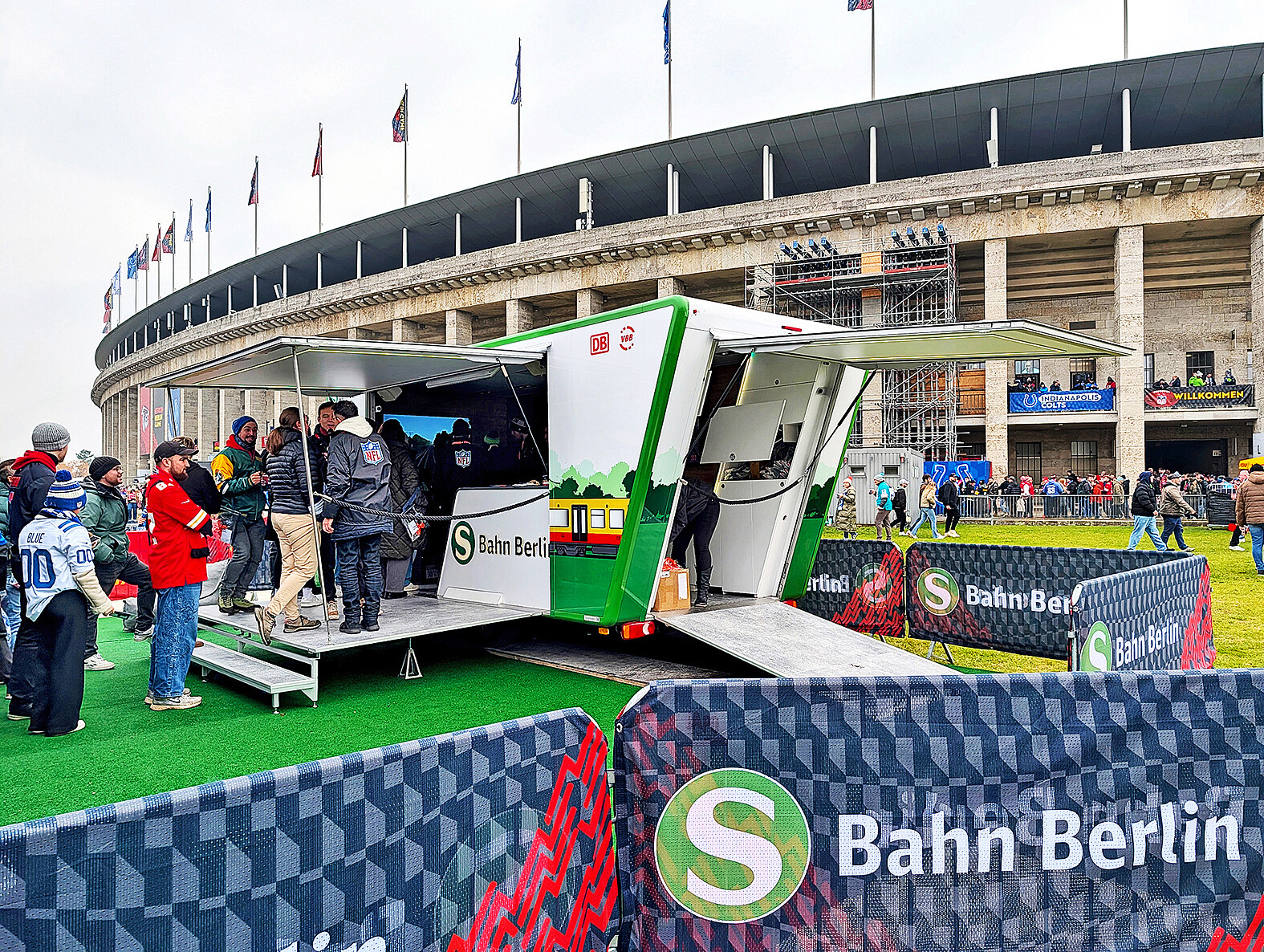 Die Besucher:innen knipsten Erinnerungsbilder in der Fotobox, stellten beim S-Bahn-Quiz ihr Wissen unter Beweis und freuten sich über verschiedene kleine Geschenke. Besonders beliebt waren Socken im eigens für die Veranstaltung erstellten NFL/S-Bahn Berlin-Design und natürlich der Fahrsimulator.