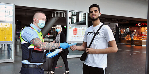 Die Mitarbeiterinnen und Mitarbeiter der DB Sicherheit kontrollieren bei ihren Einsätzen die Einhaltung der Schutz- und Hygienemaßnahmen. Zusätzlich sind immer wieder spezielle Präventionsteams in den S-Bahnen und Regionalzügen unterwegs. Dabei werden die Einsatzkräfte der DB Sicherheit von Ordnungsamt und Bundespolizei unterstützt. Wer ohne eine Mund-Nasen-Bedeckung angetroffen wird, muss mit einem Bußgeld von mindestens 50 Euro rechnen.