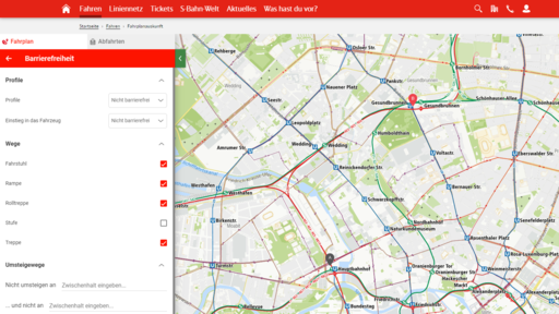 Für alle Fahrgäste, die mit Koffern, Kinderwagen oder Rädern unterwegs oder mobilitätseingeschränkt sind, eine wichtige Verbesserung: Für S- und U-Bahnhöfe werden auch Aufzugsstörungen angezeigt und alternative Routen mit funktionierenden Aufzügen angeboten. Bei der Routenplanung wird an jedem Abschnitt der Betreiber der Fahrt genannt. So können Fahrgäste leicht Kontakt zum Verkehrsunternehmen aufnehmen, falls sie Fragen haben oder Hilfe benötigen.
