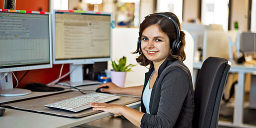 Peggy Grunecke, Disponentin Personal und Störung, sitzt vor mehreren Bildschirmen und telefoniert konzentriert. Auch Kati Nickel, Disponentin Information, ist voll beschäftigt und hat momentan keine Zeit für mich. Ich stehe ein wenig verloren da, denn natürlich geht diese wichtige Arbeit erst einmal vor.