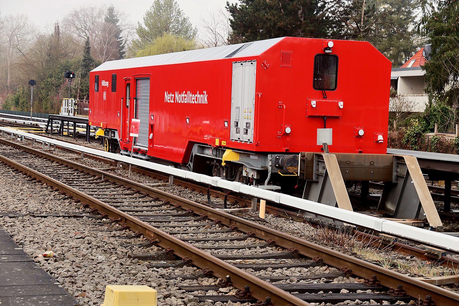 Der „Neue“ wurde am 25. März von Lichtenberg ins S-Bahnwerk Wannsee überführt: Er löst den in die Jahre gekommenen bisherigen Hilfsgerätezug ab, der seit 1994 im Einsatz war und derzeit noch in der Werkhalle in Wannsee steht.