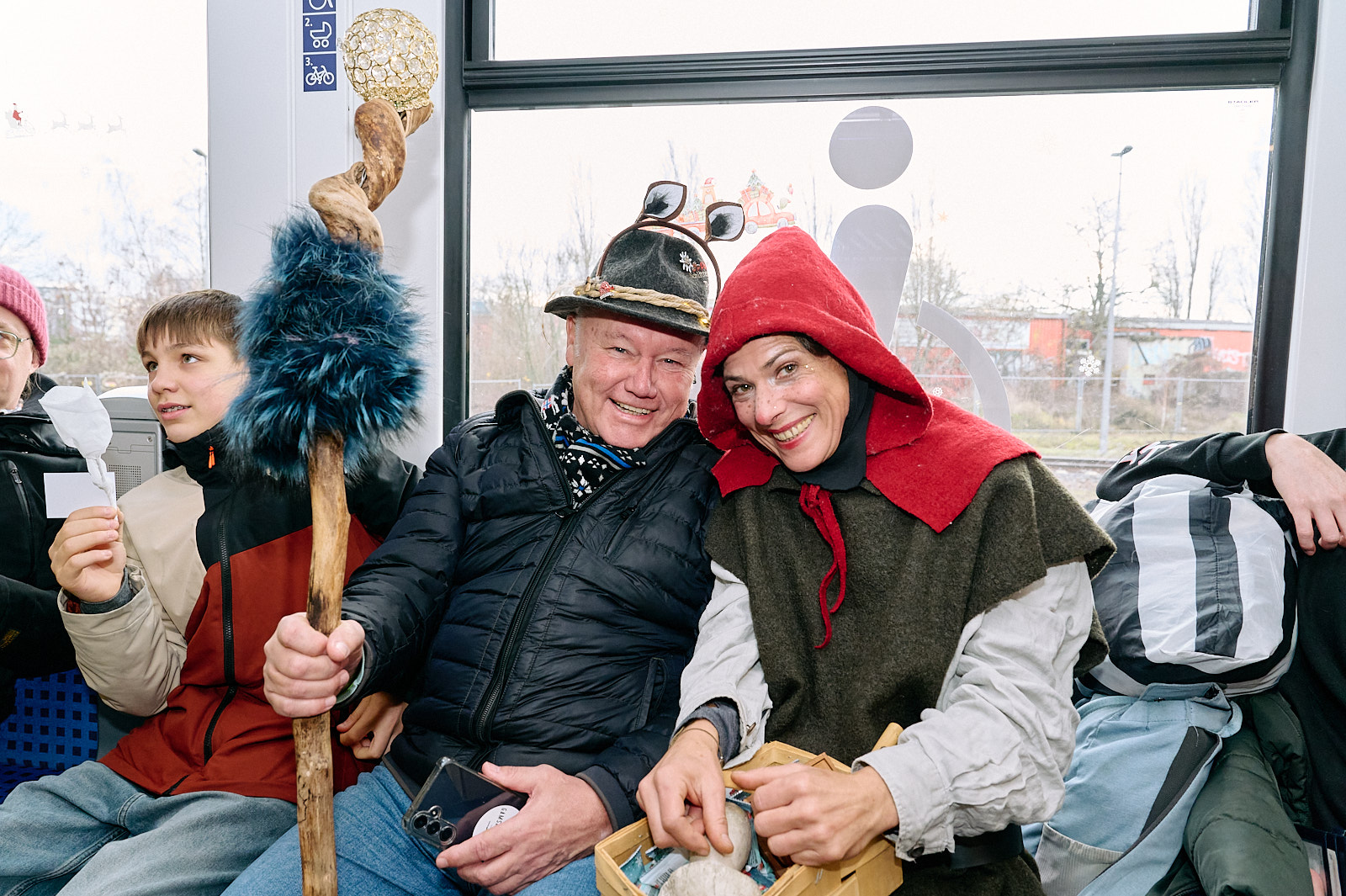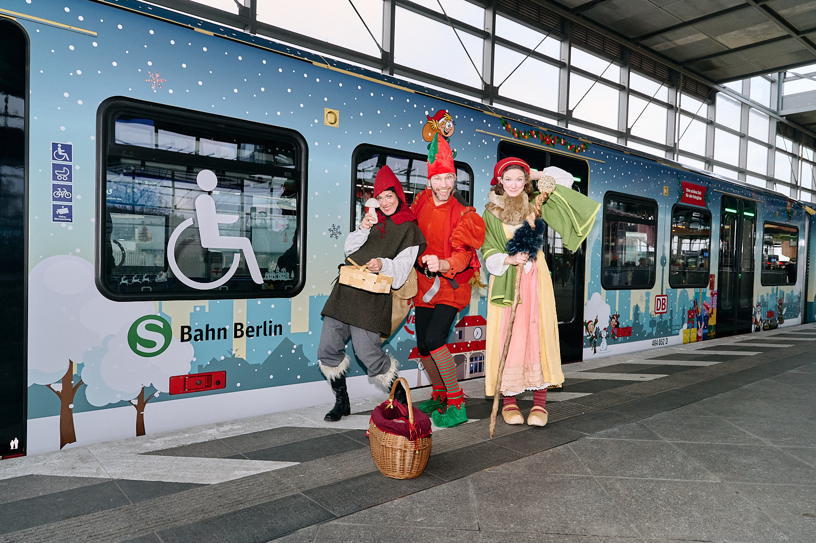Inspiriert von der Gestaltung des Zuges sind am Samstag und Sonntag jeweils drei Künstler:innen in liebevoll gestaltete Wichtelkostüme geschlüpft und haben den Fahrgästen für kurze Zeit eine Flucht aus dem Alltag beschert. Diese Aktion haben wir organisiert, um Berliner:innen und Gästen etwas zurückzugeben und ihnen zwischen all dem Weihnachtstrubel eine Freude zu bereiten.