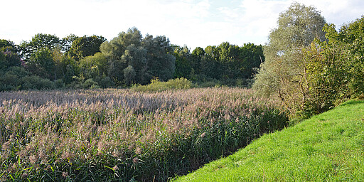 Vor der Kirche führt ein Weg in die Allee am Forsthaus. Folgen Sie dieser durch das malerische Bäketal. Bevor der Teltowkanal gebaut wurde, mäanderte hier das Flüsschen Bäke als Fließ durch die Senke.