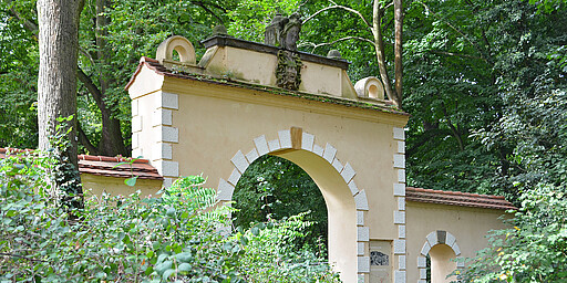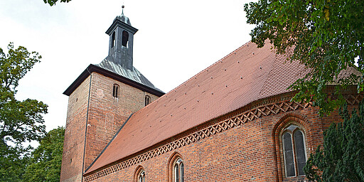 Ohne Abstecher zum Sportboothafen geht es links die Oderstraße entlang, die nach gut zwei Kilometern an ihrem Ende aus Teltow heraus und geradewegs nach Kleinmachnow führt. Schwenken Sie hier gleich rechts in die Straße Im Tal und an deren Ende wiederum rechts in die Straße Am Weinberg ein. Kurz darauf führt der Weg links in den Zehlendorfer Damm und am Ufer des Machnower Sees entlang, bis Sie die 400 Jahre alte Dorfkirche (3) erreichen. Gegenüber thronen zwei Göttinnen – Medusa und Minerva – auf dem Medusenportal (4), durch das man früher den Gutshof betrat.