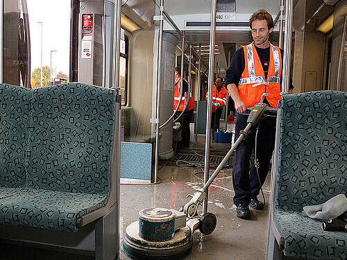 Der leere Pappbecher, eine vergessene Zeitung, hereingetragener Schneematsch am Boden oder Schmierereien an den Wänden - wir reinigen für Sie Züge und Bahnhöfe