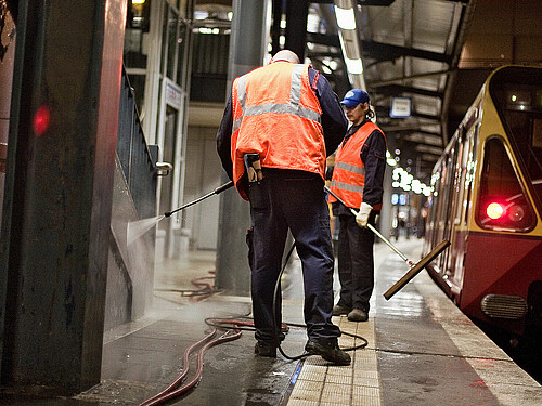 Mehr als eine Millionen Menschen nutzen täglich die S-Bahn Berlin. Doch nicht nur das hohe Fahrgastaufkommen, auch das Wetter, vor allem regennasse Tage und Schneefälle im Winter, tragen dazu bei, dass Züge und Bahnhöfe schnell verschmutzen. Wir haben zahlreiche Spezialisten im Einsatz, um schnell Abhilfe zu schaffen, wenn es schmutzig wird: