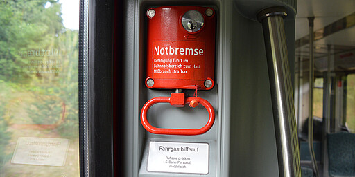 - Die Notbremse befindet sich ebenfalls im Einstiegsbereich.