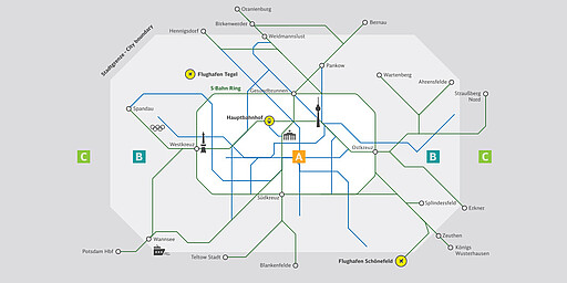 Damit Sie beim Kauf eines Tickets nicht zwischen den Verkehrsunternehmen unterscheiden müssen, gibt es den Verkehrsverbund Berlin-Brandenburg (VBB). Darin sind alle Unternehmen zusammengefasst.