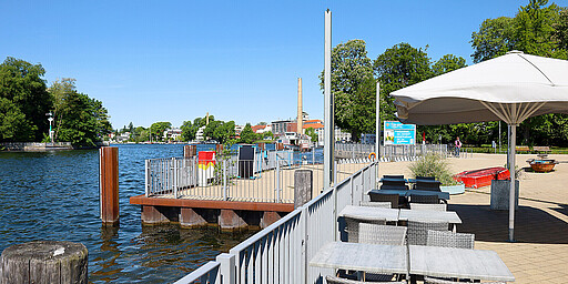 Erleben Sie das rege Treiben im kulturellen Zentrum des im Jahr 1753 gegründeten Kolonistendorfes, das ab 1890 großstadtmüde Bohemien und Literaten aus ganz Europa anzog. Nach etwa 500 Metern überqueren Sie den Müggelseedamm und halten sich links, um kurz darauf rechts in die Josef-Nawrocki-Straße einzubiegen und den Ausblick auf den Großen Müggelsee (3) zu genießen.