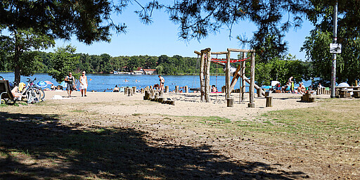Ein zur Badestelle gehörender Spielplatz bringt Kinderaugen zum Leuchten.