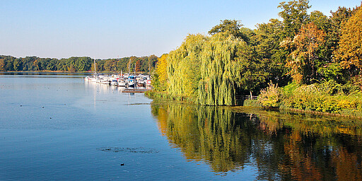 Im Norden Berlins liegt der Tegeler See. Mit einer Fläche von 4,6 Quadratkilometern ist er der zweitgrößte See Berlins – und einer der schönsten. Hier gibt es viel zu entdecken und zu erleben: Schippern Sie etwa mit dem Tretboot oder einem der vielen Ausflugsschiffe rund um die sieben Inseln im See, baden Sie im Strandbad Tegelsee am Westufer (wieder offen!) oder schauen Sie den Segelbooten und Surfern zu. Wasserspaß vom Feinsten!