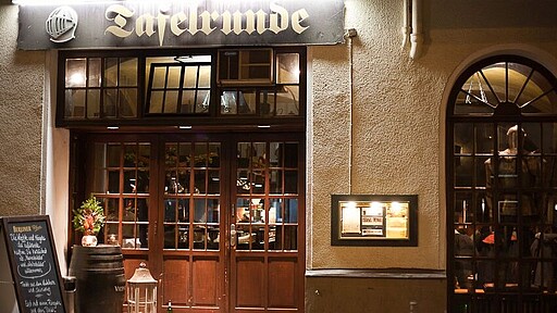 Speisen wie im Mittelalter: Wer davon schon immer geträumt hat, ist in der Tafelrunde genau richtig. Teller aus Zink, Becher aus Kupfer, steinerne Wände und auf der Speisekarte stehen Schweinshaxe, Spanferkel und Met aus Krügen.