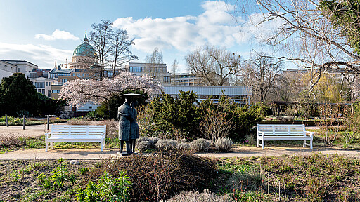 Wer in Potsdam nach einem idyllischen Platz für sich und sein Buch sucht, der wird zum Beispiel auf der Freundschaftsinsel fündig. Von der Langen Brücke kommend, bildet eine weite Rasenfläche mit einzelnen Bäumen den Auftakt zum Inselrundgang. Über den Hauptweg an der Neuen Fahrt geht es hinab zum Staudengarten hinter den beiden Torhäusern.
